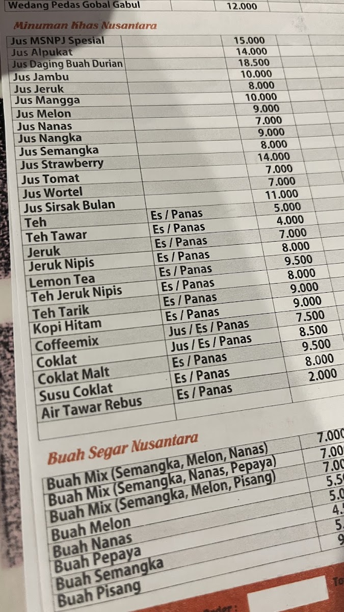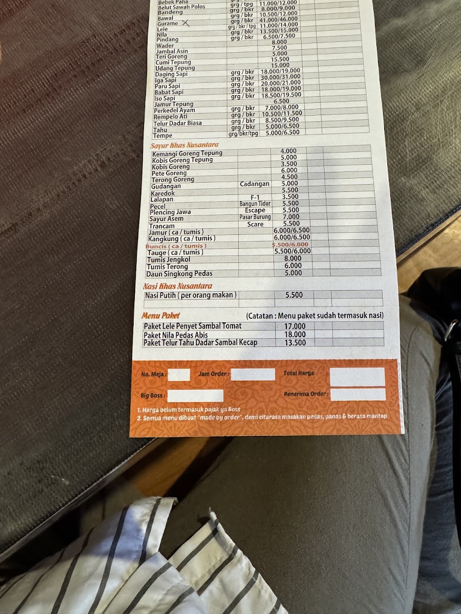 Waroeng Spesial Sambal 'SS' Wonogiri Menu